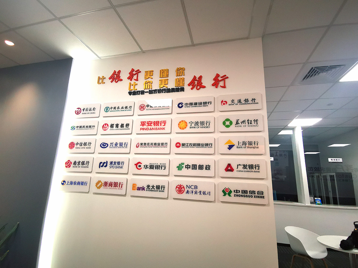 銀行LOGO墻制作-亞克力UV彩印雕刻