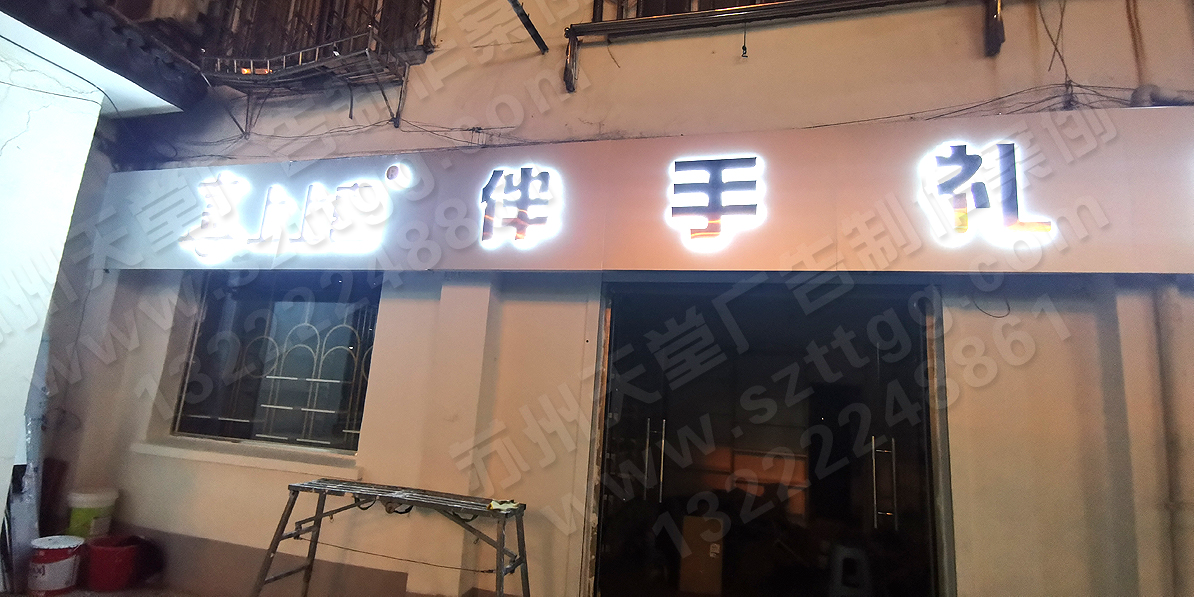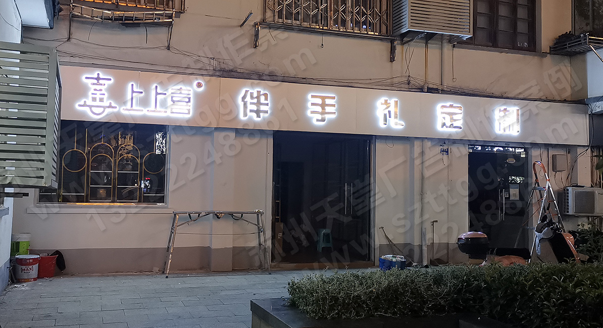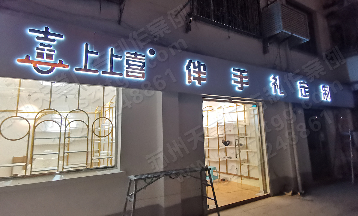 上上喜禮品店招-玫瑰金亞克力背光字制作安裝